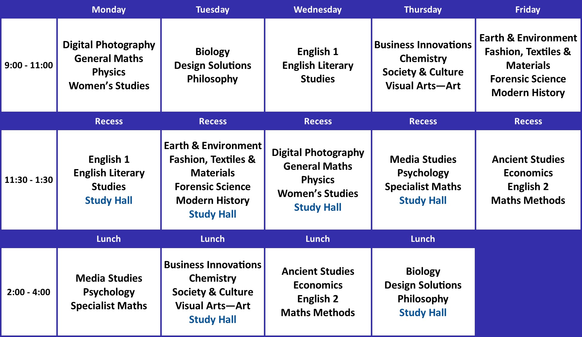Stage 1 Timetable Semester 1 2026
